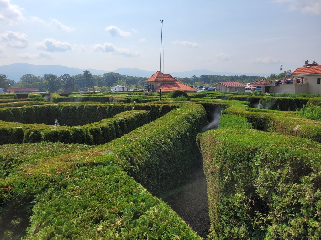 Hanging fish After going through the caverns, I went through a garden maze of junipers. Took me 20 minutes to get out.