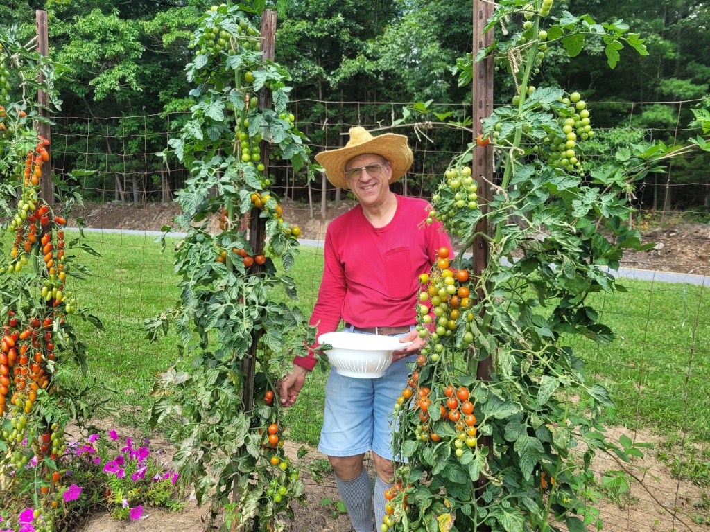Charlie has a fantastic garden. We have been eating tomatoes, corn, and carrots.